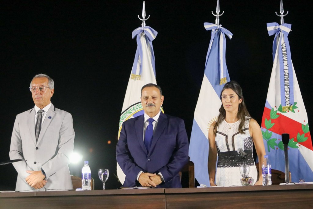 En su alocución, el Gobernador habló de las acciones impulsadas en materia de seguridad, como la oferta formativa de los efectivos policiales a la vez que se trabajó en la renovación y el mantenimiento preventivo de la Infraestructura y equipamiento de Seguridad, en lo que destacó la construcción de lo que será la Comisaría 10ª. En su oratoria no dejó tampoco de lado la seguridad en el ciberespacio "atentos a los lineamientos de los ODS de la ONU".