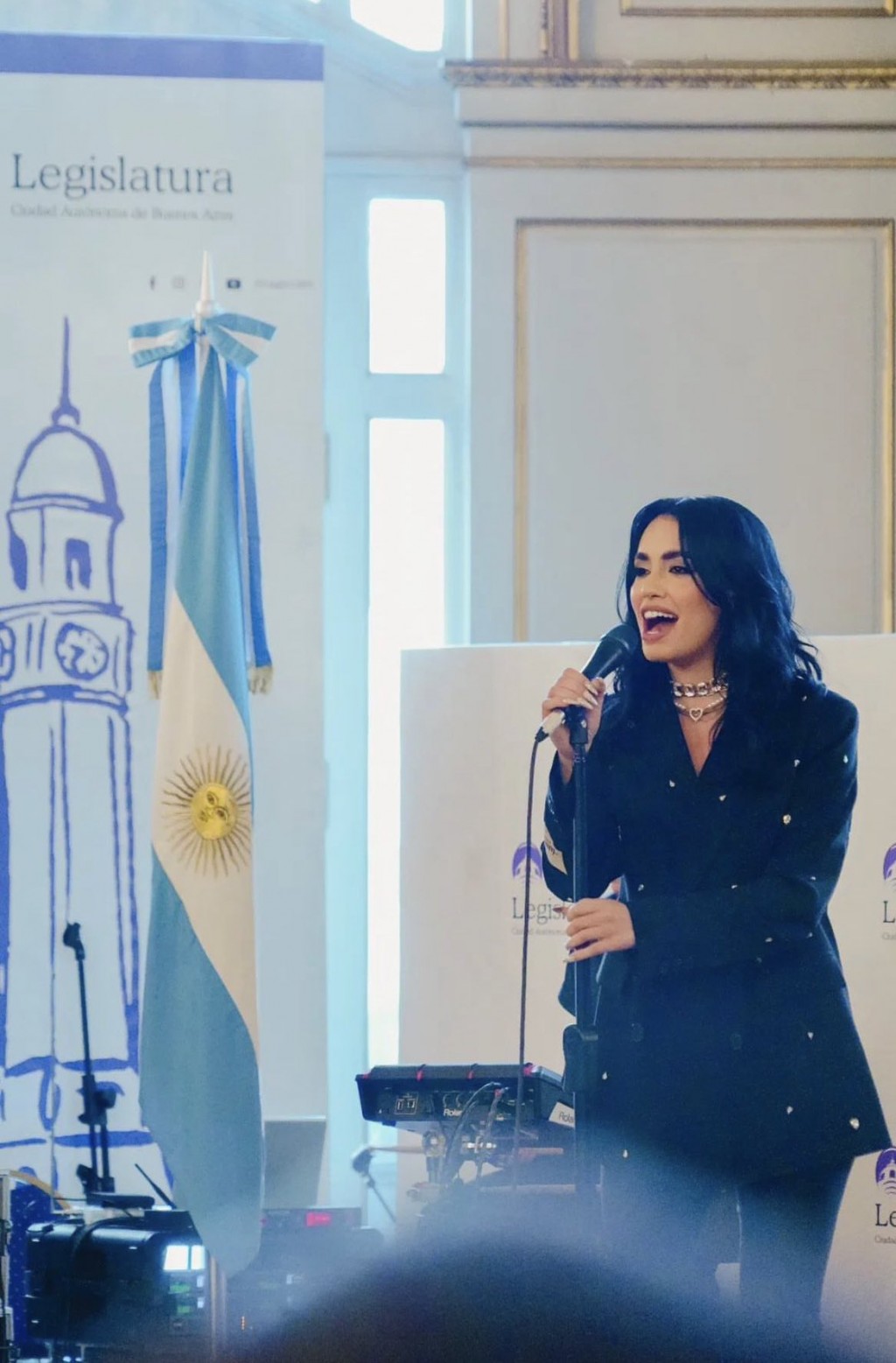 La artista cerró su presentación en la Legislatura interpretando dos canciones: Diva y Soy.
