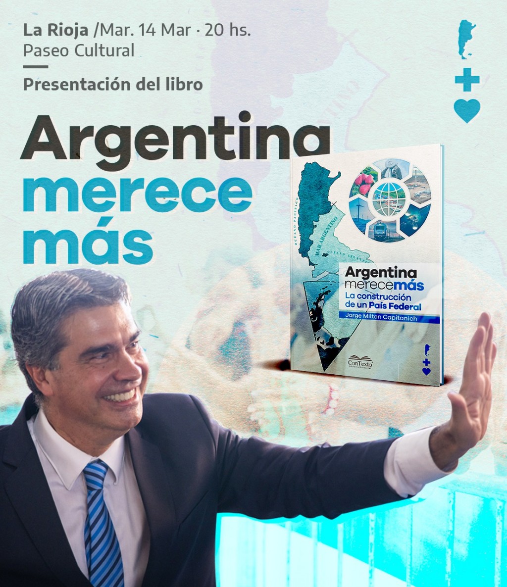 El gobernador de Chaco, Jorge Capitanich presentará el libro “Argentina merece más: La construcción de un país Federal”, de su autoría. La actividad se llevará a cabo el próximo martes 14 de marzo a las 20 horas en instalaciones del Paseo Cultural Castro Barros.
