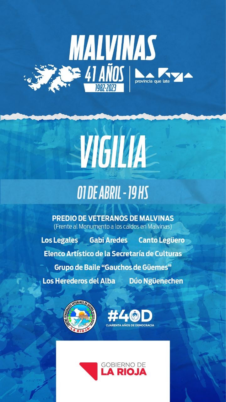 En el ámbito riojano, la vigilia comenzará este sábado 1 de abril desde las 19 horas en el monumento de Malvinas, con distintos números musicales, esperando la jornada del domingo para realizar el acto y el desfile protocolar.