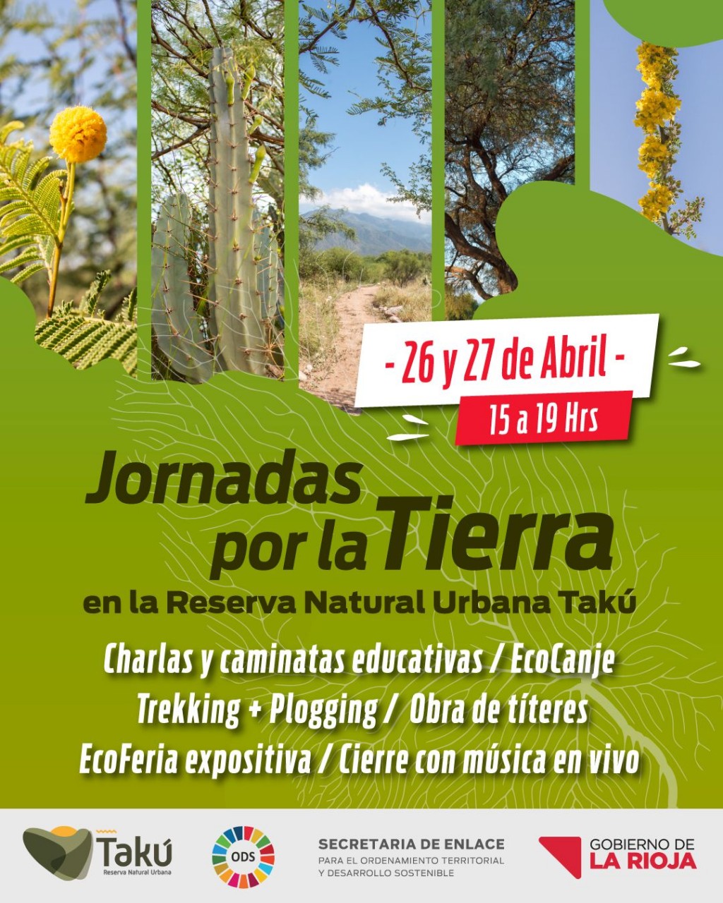 De esta manera, las jornadas contarán con stands de áreas invitadas, charlas educativas y caminatas para estudiantes del nivel primario y secundario, juegos, EcoCanje; una Eco Feria con emprendimientos sostenibles y música en vivo, para que el público pueda disfrutar la tarde y celebrar al planeta rodeados de la naturaleza que ofrece la Reserva Natural Urbana Takú.