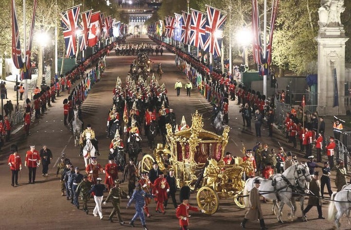 Tras el servicio religioso, Carlos y Camilla, de 75 años, partieron en el Gold State Coach de cuatro toneladas construido para Jorge III, el último rey de las colonias americanas de Gran Bretaña, para dirigirse al palacio de Buckingham en una procesión en la que participaron 4.000 militares de 39 naciones.