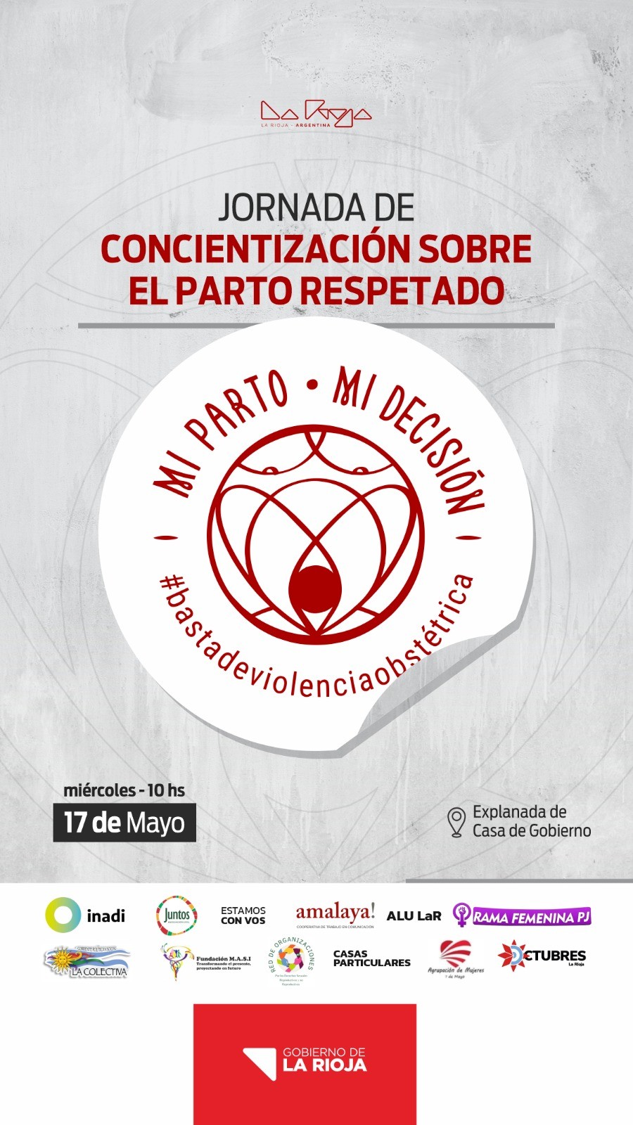 En este sentido, invitan a participar de la Jornada de Concientización del Parto Respetado en la explanada de Casa de Gobierno, mañana 17 de mayo, a partir de las 10am, con información, relatos de sobrevivientes, profesionales e intervenciones artísticas. Asimismo, convocar a toda la comunidad a sumarse, con algo rojo, a la Primera Marcha Nacional contra la Violencia Ginecobstétrica y Neonatal a las 17hs en la Plaza 25 de Mayo.