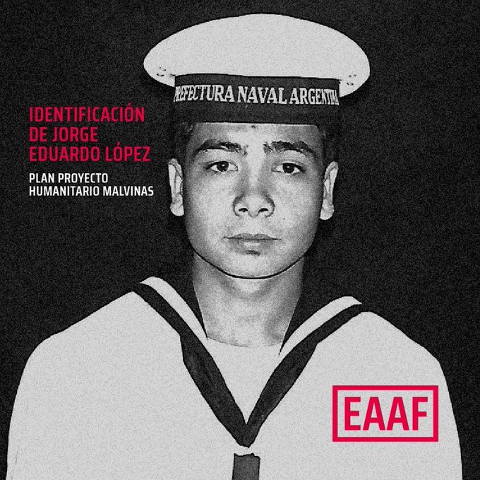 El Equipo Argentino de Antropología Forense (EAAF) identificó a otro soldado caído en la Guerra de Malvinas. Se trata del cabo segundo de Prefectura, Jorge Eduardo López, que murió el 10 de mayo de 1982, a los 19 años. Con él, ya son 121 soldados nacionales que recuperaron su identidad, en el marco del Plan Proyecto Humanitario, a 41 años del enfrentamiento.