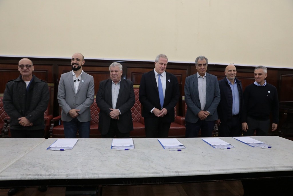 De la firma participaron el rector de la UBA, Ricardo Gelpi; el vicerrector, Emiliano Yacobitti; y el ministro de Educación de la Nación, Jaime Perczyk.