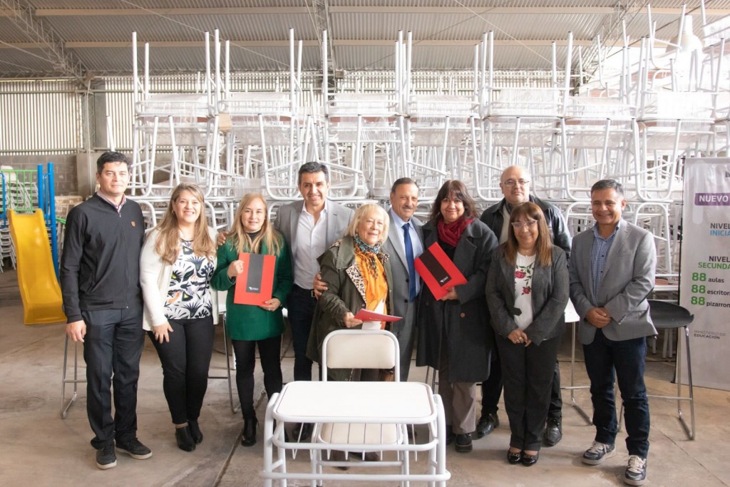 El primer mandatario junto al ministro de Educación Ariel Martínez, hicieron entrega este miércoles, de mobiliario y equipamiento que serán destinados para todas las instituciones educativas de todos los niveles de la provincia y consta de sillas, mesas, escritorios, mesas de comedor, pizarrones, con una inversión de 300 millones de pesos, a fin de garantizar la calidad educativa.