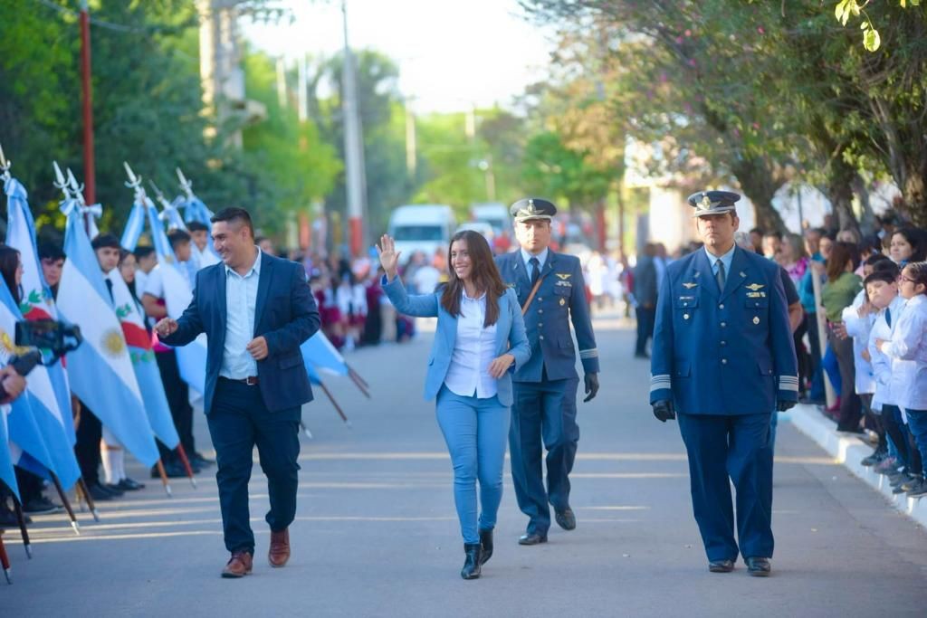 La vicegobernadora y candidata a senadora nacional, Florencia López, encabezó junto al jefe comunal Ricardo Romero el desfile cívico-militar por el 157° aniversario del Departamento Ángel Vicente Peñaloza.