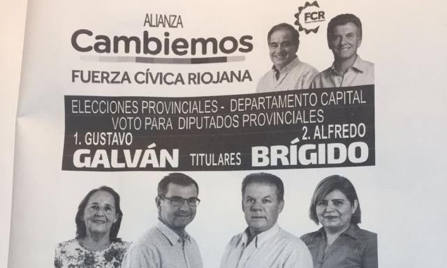 De esta manera, el voto oficializado de la Alianza Fuerza Cívica Riojana - Cambiemos tendrá las imágenes de Galván, Brígido, De León y Vega en el centro, mientras que los referentes nacionales irán sobre uno de los márgenes en un tamaño notablemente menor.