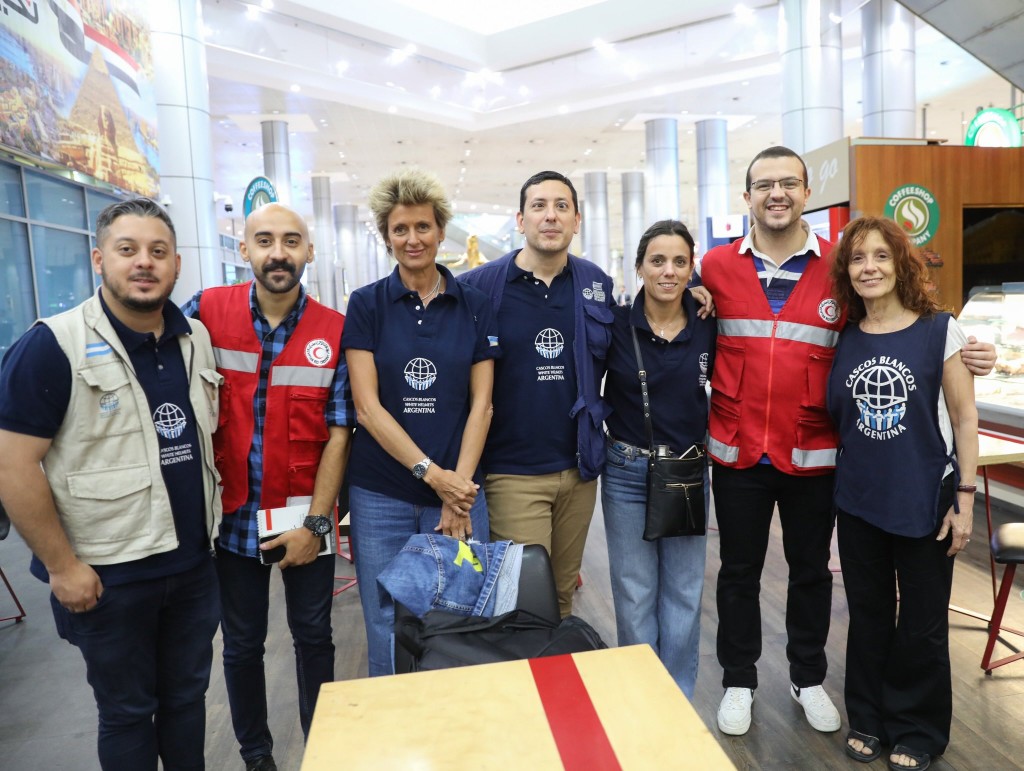 El embajador argentino en Egipto, Gonzalo Urrolabeitía, recibió la primera carga de los materiales enviados por el Ministerio de Salud que encabeza Carla Vizzotti; el Ministerio de Desarrollo Social, a cargo de Victoria Tolosa Paz, y por Cascos Blancos, dependientes de Cancillería.