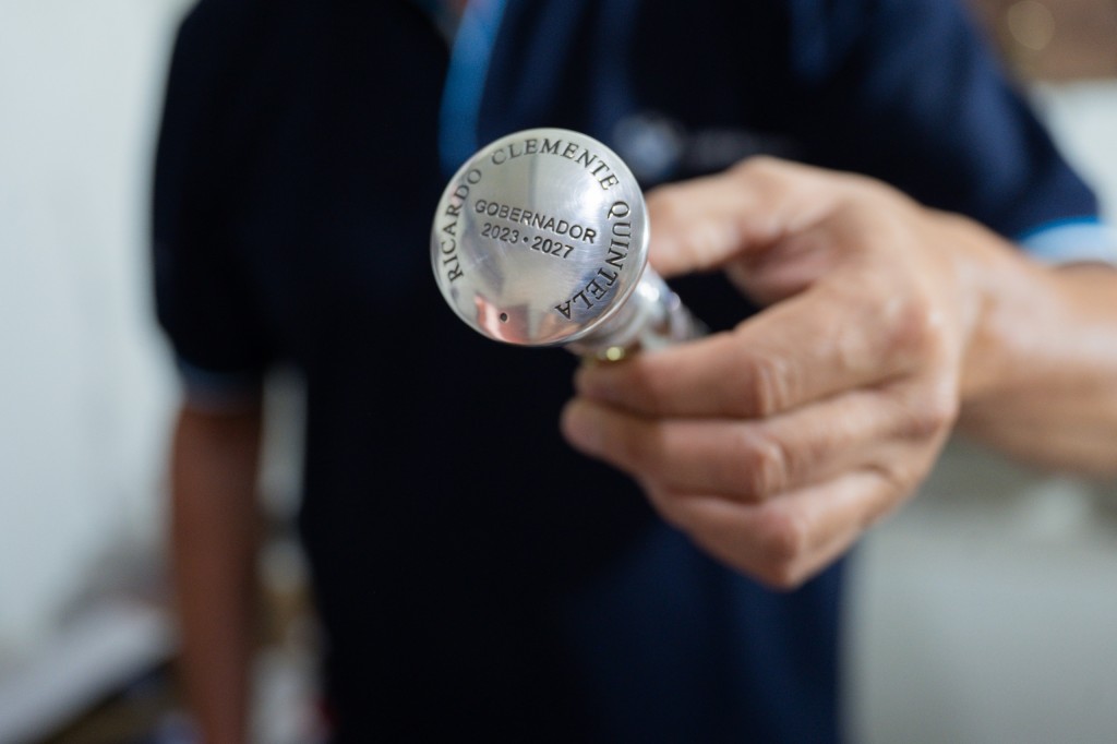 El orfebre Pedro Fonteñez dio detalles de la realización del bastón mando y la banda gubernamental el gobernador Ricardo Quintela llevará en la asunción de su segundo mandato. Al hablar sobre estas obras, destacó la impronta social del mandatario provincial al elegir las frases que lleva grabadas el bastón.