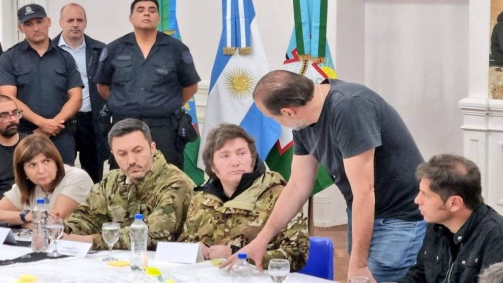 "Frente a eventos adversos se debe sacar lo mejor; los argentinos siempre sacamos lo mejor de nosotros mismos", señaló Milei a la prensa, y añadió: "Siempre ponemos delante nuestra solidaridad, por estoy plenamente confiado en que ustedes van a poder resolver esta situación de la mejor manera posible, con los recursos ya existentes".