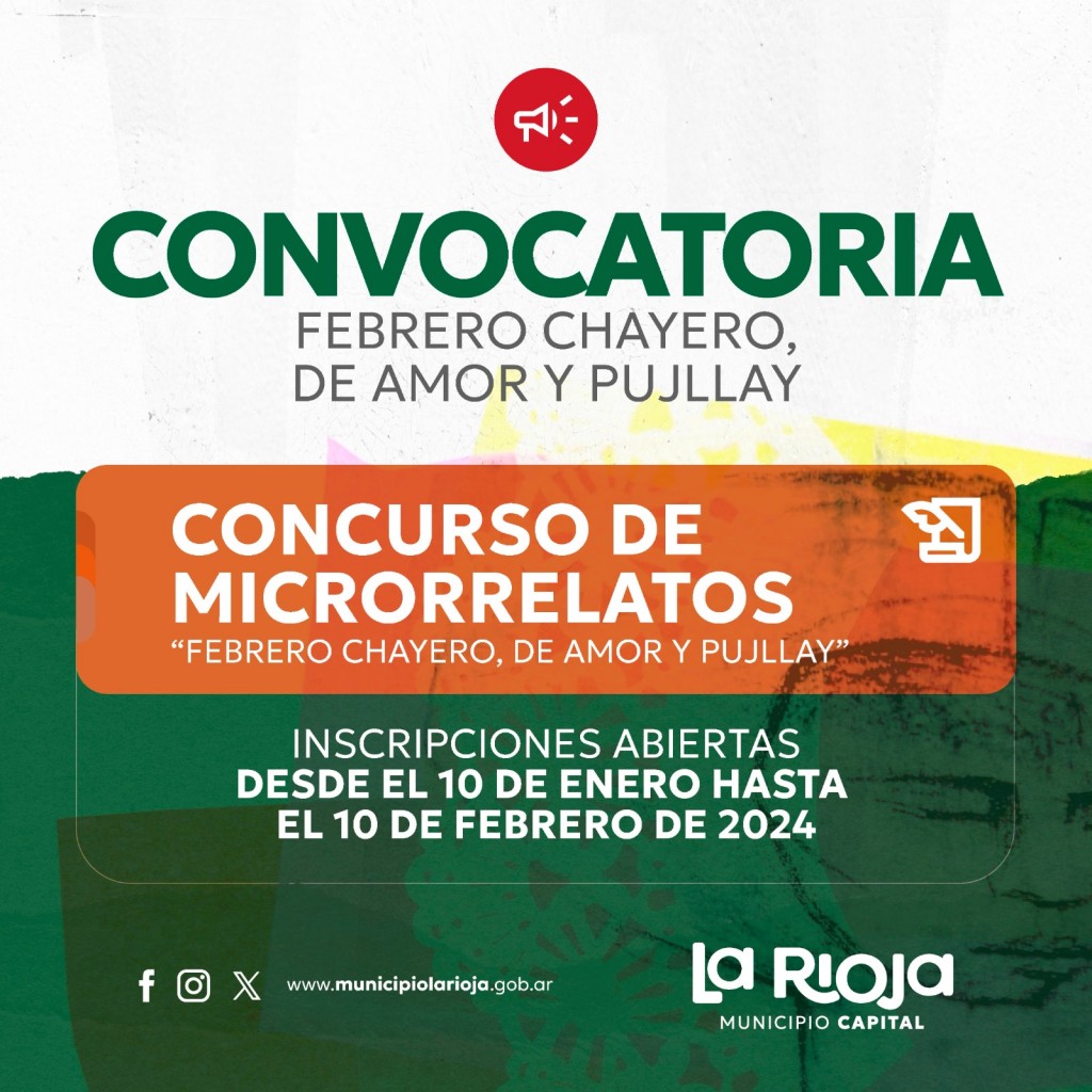 La subsecretaria de Turismo y Cultura llevará a cabo la convocatoria artística del “Febrero Chayero, de amor y Pujllay” edición 2024, con el objetivo de promover, estimular y sostener las distintas disciplinas artísticas de nuestra provincia.
