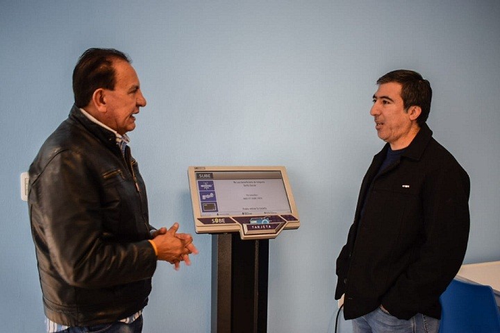 El ministro de Infraestructura, Juan Velardez y el coordinador del Servicio Público de Transporte de la Provincia, Miguel Ángel Asis pusieron en funcionamiento uno de los dos locales para la adquisición de la tarjeta SUBE.