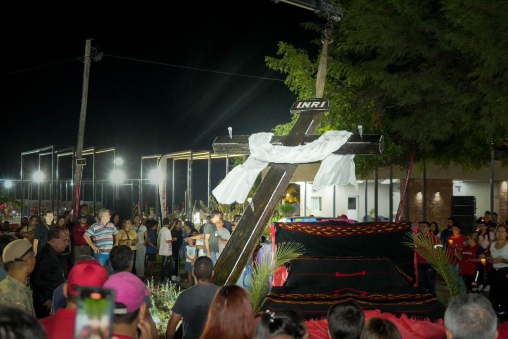 El intendente, Armando Molina, encabezó la Peregrinación de la "Cruz con el Santo Sudario", que se desarrolló el pasado jueves desde el Hospital Vera Barros hasta el Parque Norte "Felipe Varela". En ese paseo quedó entronizada la cruz y se convertirá en un lugar de encuentro y reflexión, según lo manifestado por el jefe comunal.