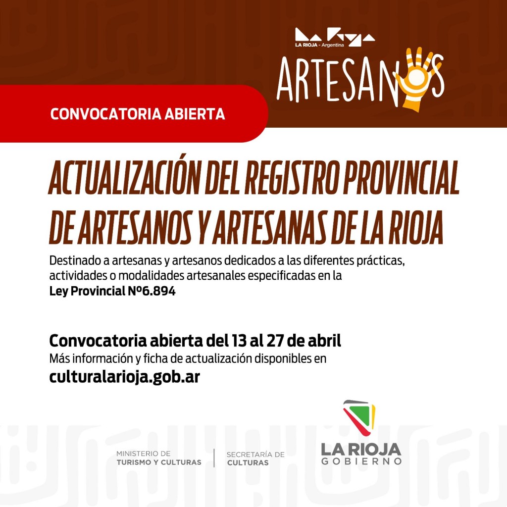 Más información y ficha de actualización se encuentran disponibles en el sitio web www.culturalarioja.gob.ar