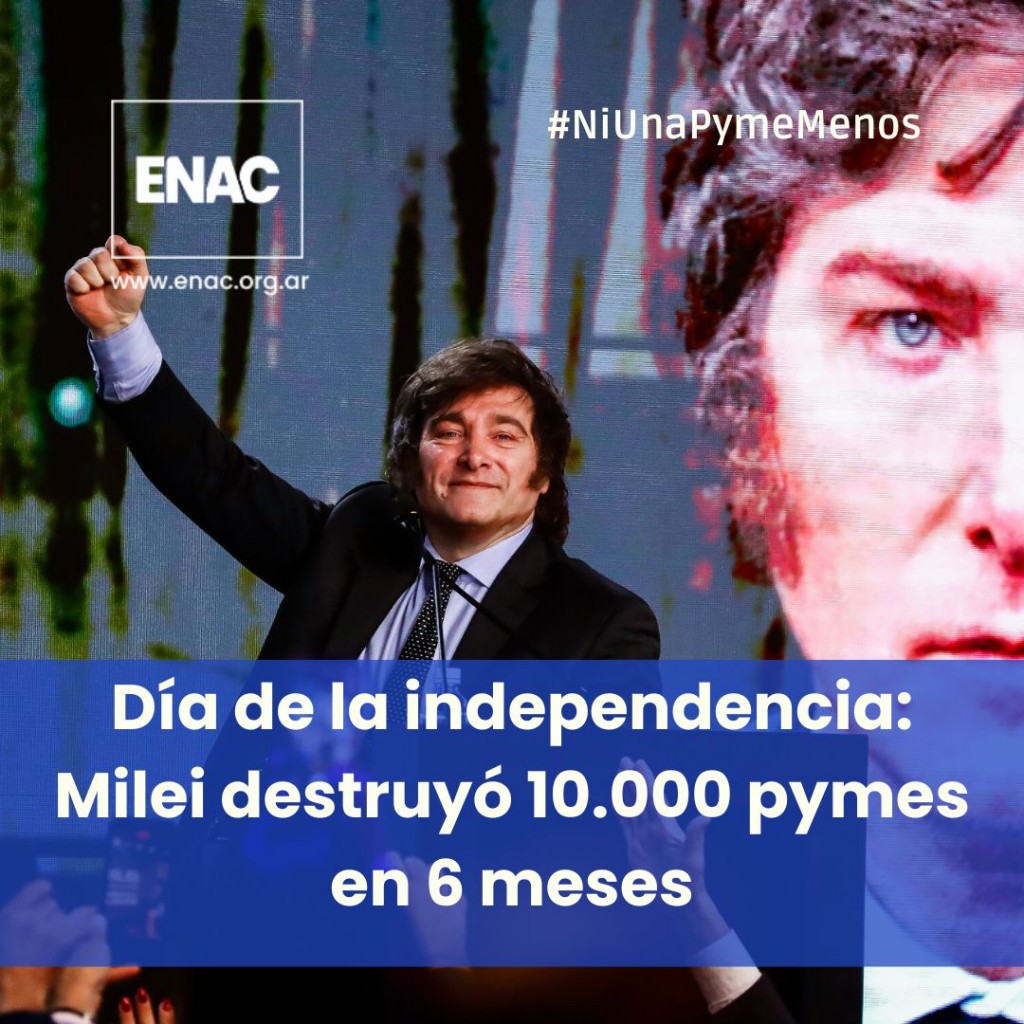 La Asociación de Empresarios y Empresarias Nacionales para el Desarrollo Argentino (ENAC) aprovechó la celebreación del día de la Independencia para informar que, durante los seis meses del gobierno de Javier Milei, más de diez mil pequeñas y medianas empresas se vieron obligadas a bajar sus persianas.