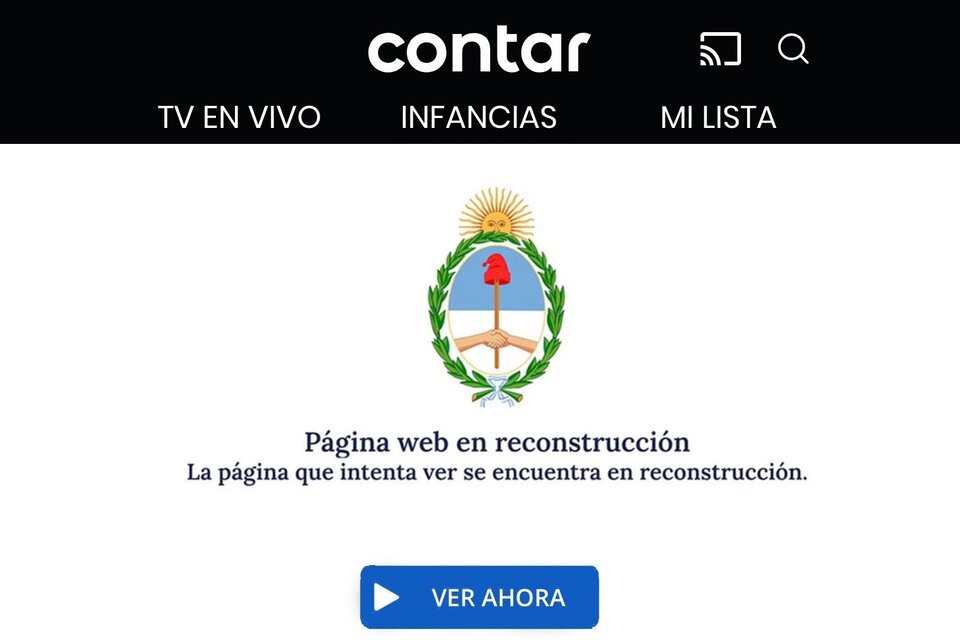 Al ingresar a la app o a la página oficial, como sucedió con la agencia de noticias Télam, se lee la leyenda "Página web en reconstrucción" y no se puede acceder a ningún contenido.