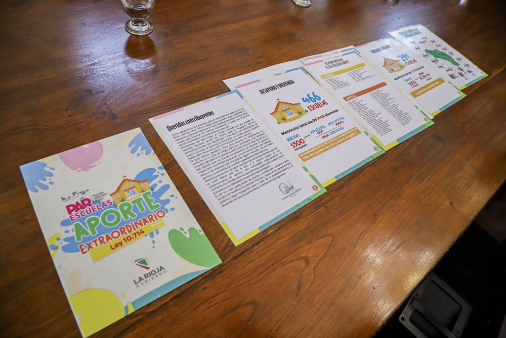El Fondo Solidario permite que más de 55 mil estudiantes de 466 escuelas de toda la provincia sigan recibiendo su desayuno y merienda: 131 de Capital, 18 de Arauco, 9 de Castro Barros, 30 de Chamical, 45 de Chilecito, 20 de General Felipe Varela, 18 de Famatina, 16 de Gral. Ángel Vicente Peñaloza, 21 de Gral. Belgrano, 26 de Gral. Juan F. Quiroga, 3 de Gral. Lamadrid, 31 de Gral. Ocampo, 26 de Gral. San Martín, 12 de Independencia, 39 de Rosario Vera Peñaloza, 9 de San Blas de los Sauces, 2 de Sanagasta y 7 de Vinchina.