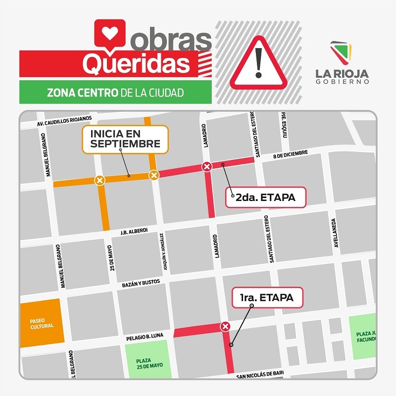A través del Ministerio de Infraestructura mencionaron que el pasado 15 de julio se reanudó la Etapa 1 de la obra con el corte de la intersección de las calles Pelagio B. Luna y Lamadrid para realizar la conexión de los dos canales de desagües ya concretados, cuyos trabajos se extenderán hasta fines de agosto.