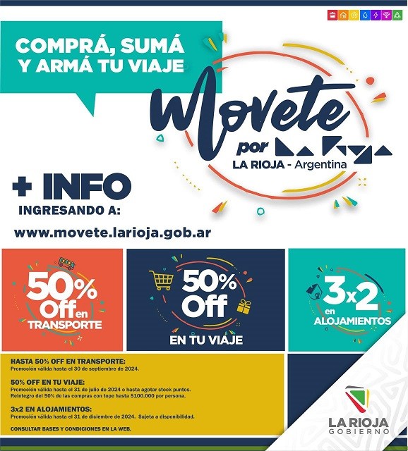 En este sentido, los beneficios: Descuento en pasajes de larga distancia y 3x2 en alojamiento, que integran la Promoción del programa Movete, tendrán una actualización para cargar las facturas en https://movete.larioja.gob.ar .