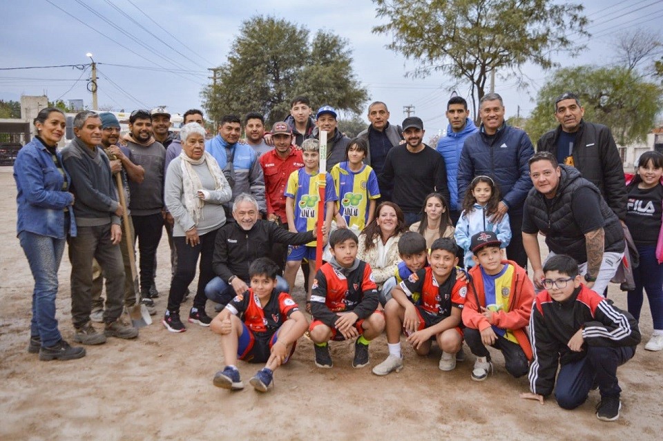 Alumnos y alumnas de las Escuelas de Fútbol de Andino y Defensores de La Boca encabezaron junto al intendente Armando Molina la plantación de ejemplares de lapachos amarillos y jacarandás en la calle Río Turbio, en la esquina con Av. Los Caudillos.