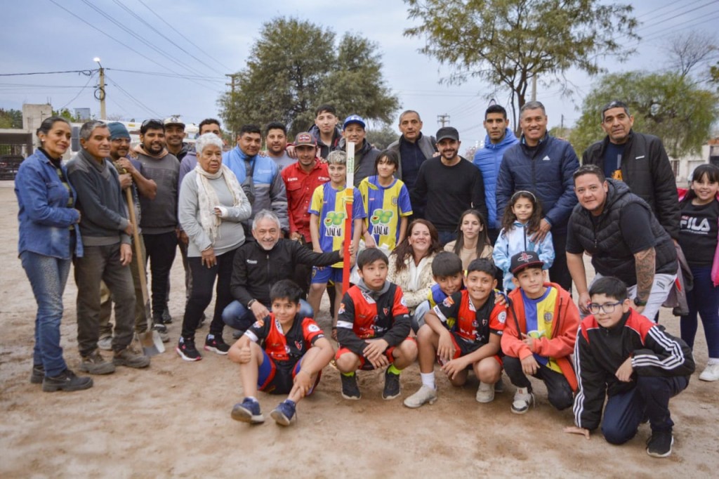 Autoridades municipales, en forma conjunta con alumnos y alumnas de las Escuelas de Fútbol de Andino y Defensores de La Boca, encabezaron la plantación de ejemplares de lapachos amarillos y jacarandás en la calle Río Turbio, en la esquina con Av. Los Caudillos.