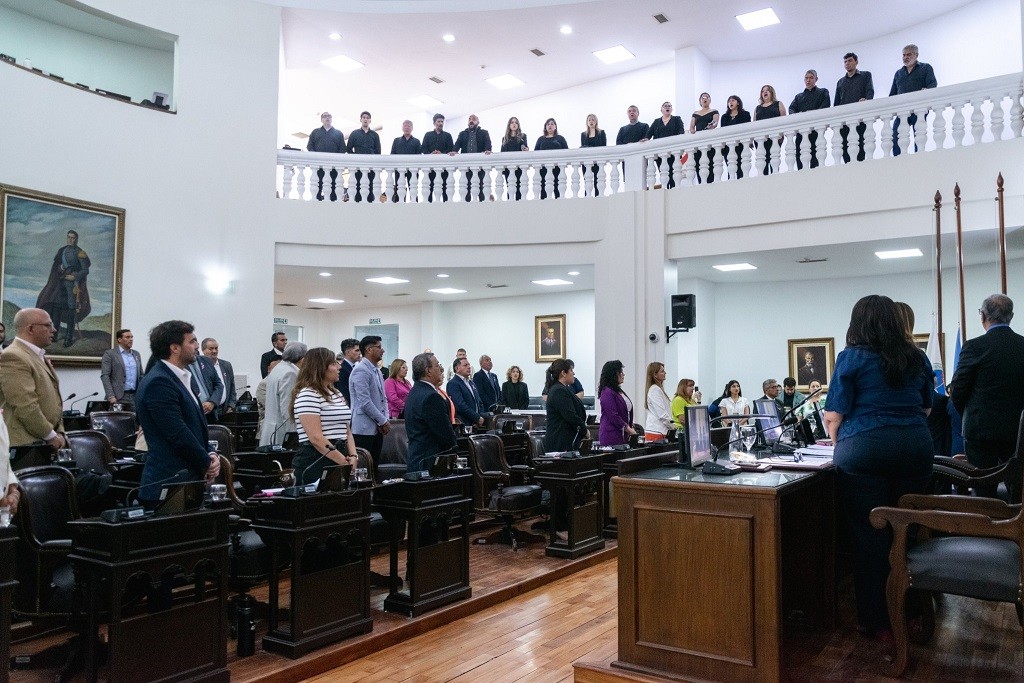 En la jornada de este miercoles se realizó la 15° Sesión Ordinaria del 139° Período Legislativo, presidida por la vicegobernadora Teresita Madera. Tras el izamiento de las Banderas, a cargo de los diputados Juan Elías, Gustavo Galván y Nicolás Díaz, el Cuerpo inició el tratamiento parlamentario.