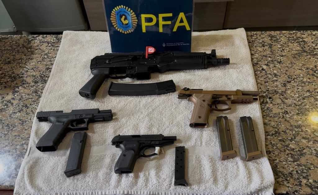 Durante la manda judicial se lograron decomisar tres pistolas, una de ellas 9 mm, la otra 40 y la tercera calibre 380, conjuntamente con un subfusil calibre 9 mm de fabricación americana pero inspirado en el clásico fusil ruso AK-47.