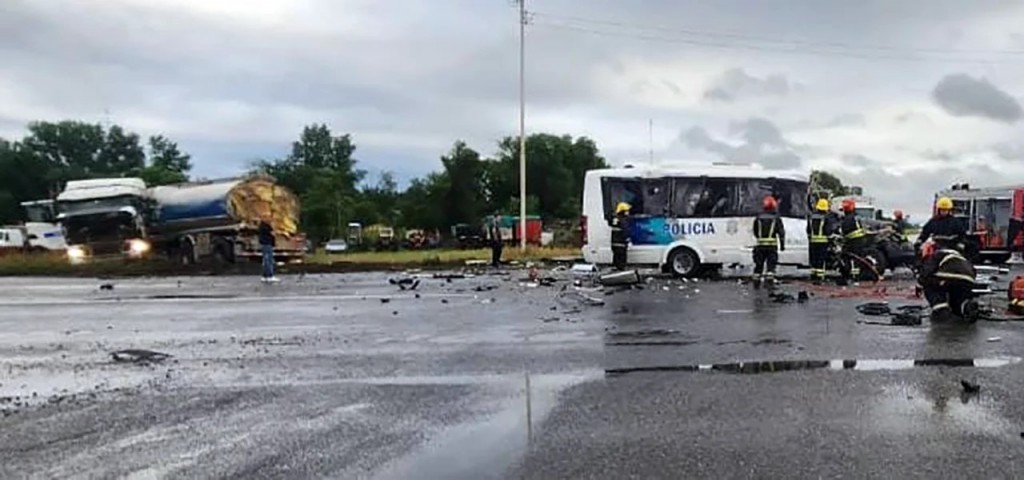 El vehículo que transportaba a las fuerzas de seguridad para el partido entre Brown de Adrogué y Atlético Rafaela chocó con un camión de combustible de Yacimientos Petrolíferos Fiscales (YPF). El siniestro provocó el fallecimiento de cuatro efectivos policiales y la tragedia ocurrió hoy a las 7:30 de la mañana, en una ubicación cercana a la ciudad de Carmen de Areco.