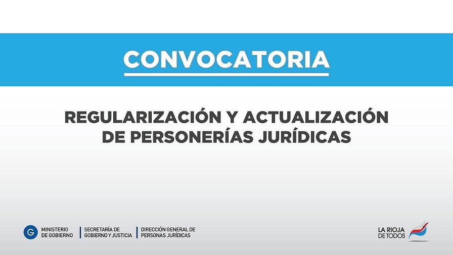 El Ministerio de Gobierno, a través de la Dirección General de Personas Jurídicas, realizó la convocatoria a todas las instituciones que se encuentran registradas en el organismo y que cuentan con Personería Jurídica otorgada a presentarse en las oficinas de la Dirección a los fines de: Regularizar su situación jurídica, reglamentaria y estatutaria; y actualizar la documentación legalmente exigida.