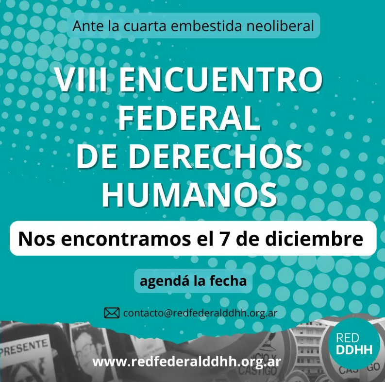 La Red Federal de Derechos Humanos organiza el VIII Encuentro Federal de Derechos Humanos, este sábado 7 de diciembre en la sede de la Universidad Nacional de Avellaneda. Se debatirá un amplio temario en comisiones y ya se encuentran abiertas las inscripciones para participar.