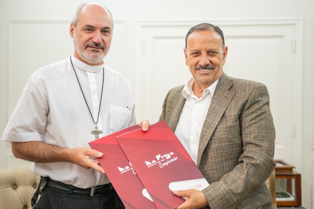 En la mañana de este lunes, el gobernador Ricardo Quintela, acompañado por la secretaria de Tierras Irene Zárate, entregó al obispo de La Rioja, Dante Braida, las escrituras correspondientes a la iglesia Catedral y al obispado, ubicados en el centro de la capital provincial. Cabe destacar que la entrega de estos documentos se producen luego de 112 años de existencia de la misma.