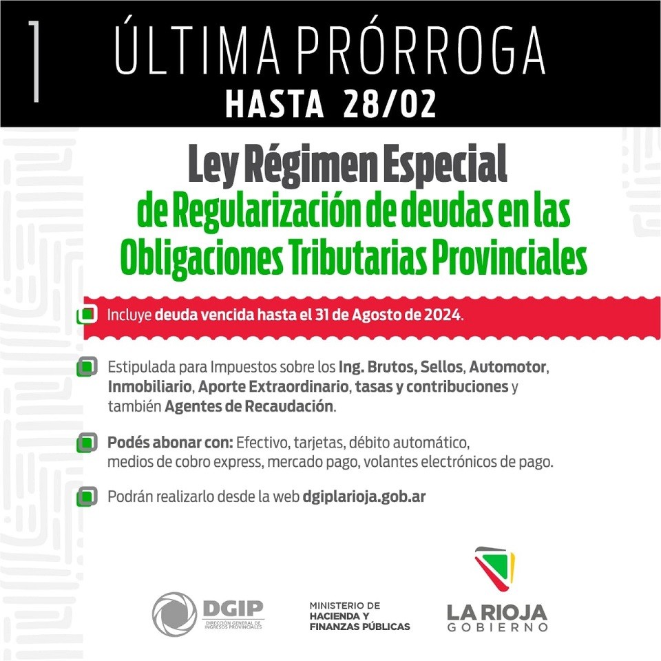 El Ministerio de Hacienda y Finanzas Públicas anunció la extensión del plazo para adherirse al Régimen Especial de Regularización de Deuda en Obligaciones Tributarias Provinciales. Será hasta el próximo 28 de febrero.