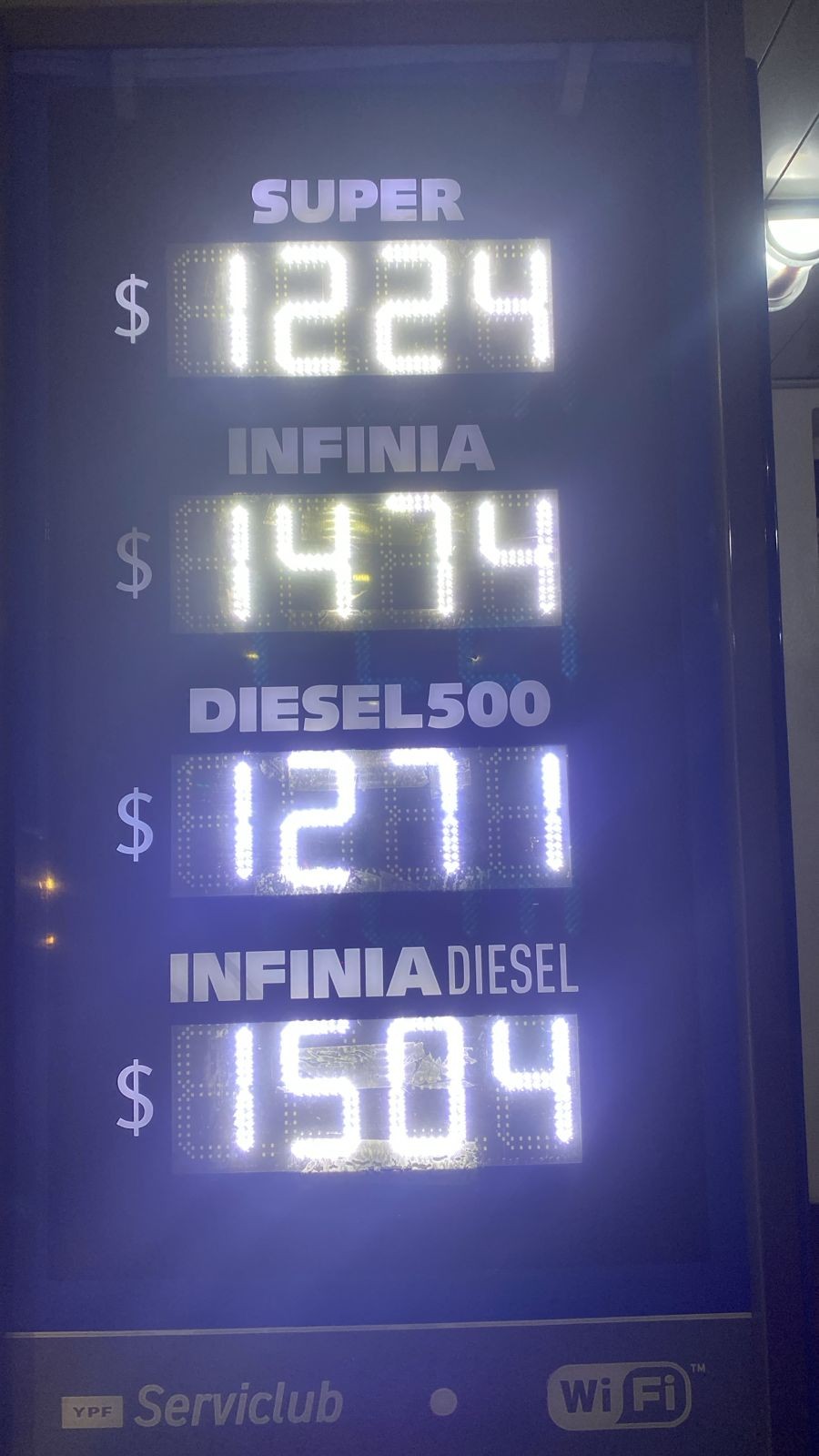 En las YPF de La Rioja, el litro de súper cuesta $ 1224, la infinia $ 1474, en tanto que el valor del diesel es de $ 1271 y la infinia diesel $ 1504.