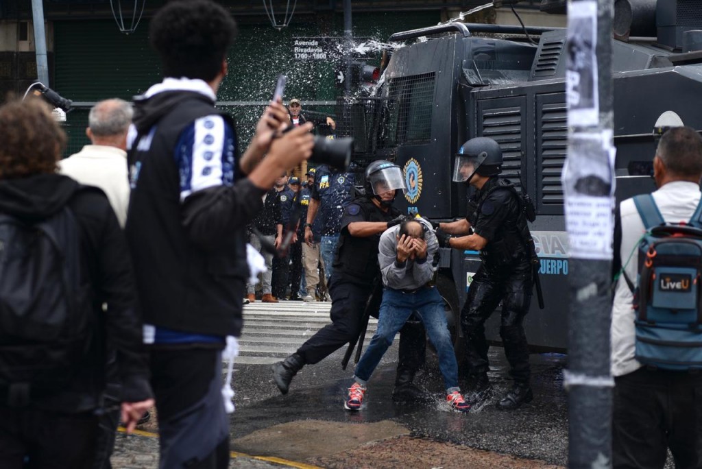 La represión policial a la marcha de jubilados e hinchas en el Congreso dejó un saldo de heridos y detenidos, entre ellos el reportero gráfico Pablo Grillo, quien sufrió una fractura de cráneo tras recibir el impacto de un cartucho de gas lacrimógeno disparado por la Policía Federal. Además se viralizó un video cuando un policía agredió a una jubilada, provocándole fractura de cráneo.