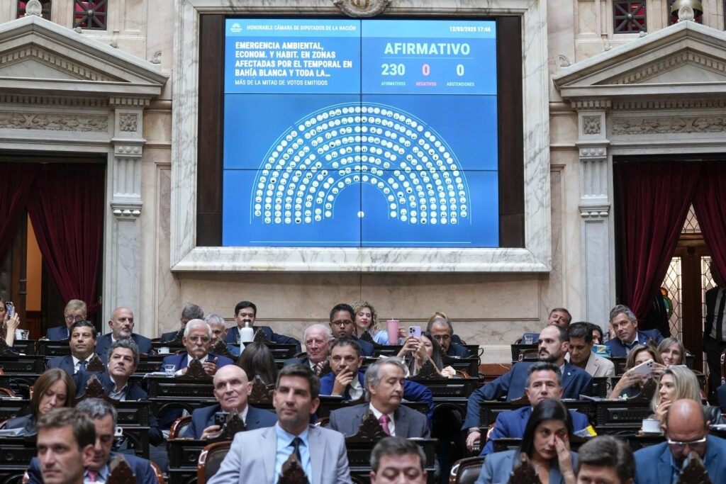 La Cámara de Diputados aprobó hoy por unanimidad un proyecto de ley para declarar la emergencia ambiental, económica y habitacional en Bahía Blanca, con el objetivo que esa ciudad obtenga los recursos para su reconstrucción luego del fuerte temporal del viernes último.La iniciativa alcanzó los 230 votos y ahora deberá ser tratada por el Senado para convertirse en ley.