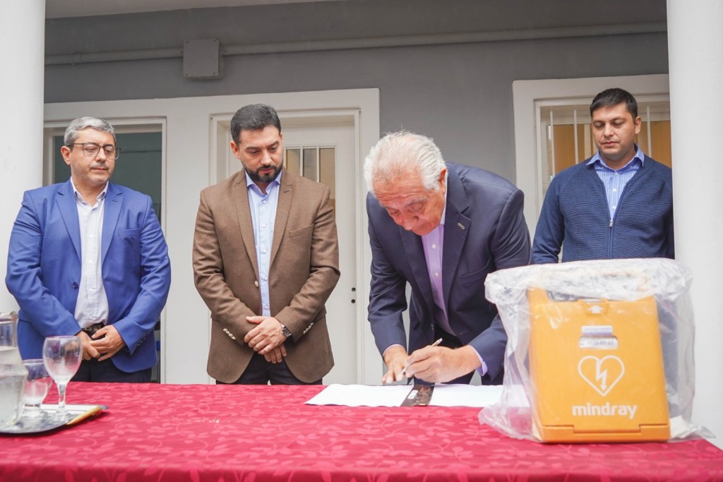 Los ministros de Salud, Juan Carlos Vergara, y de Seguridad, Justicia y Derechos Humanos, Miguel Zárate, firmaron un acuerdo para la instalación de un nuevo Desfibrilador Externo Automático (DEA) en la Alcaidía Policial, acompañado de la capacitación del personal en Reanimación Cardiopulmonar (RCP).