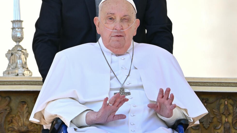 “Buen domingo a todos. Muchas gracias”, alcanzó a decir el Papa en un estado de notable debilidad, según mostraron las imágenes difundidas por el Vaticano.
