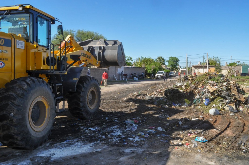 El Municipio Capital realizó un operativo integral de limpieza en el Barrio Ricardo 1º y eliminó un basural que se había formado por la acción irresponsable de vecinos en un terreno ubicado sobre la calle Anillaco.