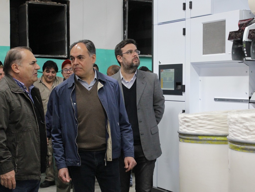 Durante el recorrido el funcionario dialogó con los directivos y operarios de la planta. Además tomó conocimiento de las pruebas que se llevan adelante para la próxima puesta en marcha de una nueva línea de producción de hilos.