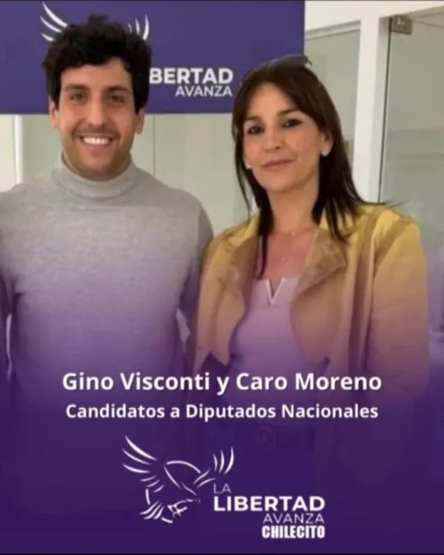 Por su parte, La Libertad Avanza, confirmó al empresario Gino Visconti, quien estará acompañado por la dirigente chileciteña Carolina Moreno. Los candidatos suplentes serán Aldo Morales y Tania Molina.