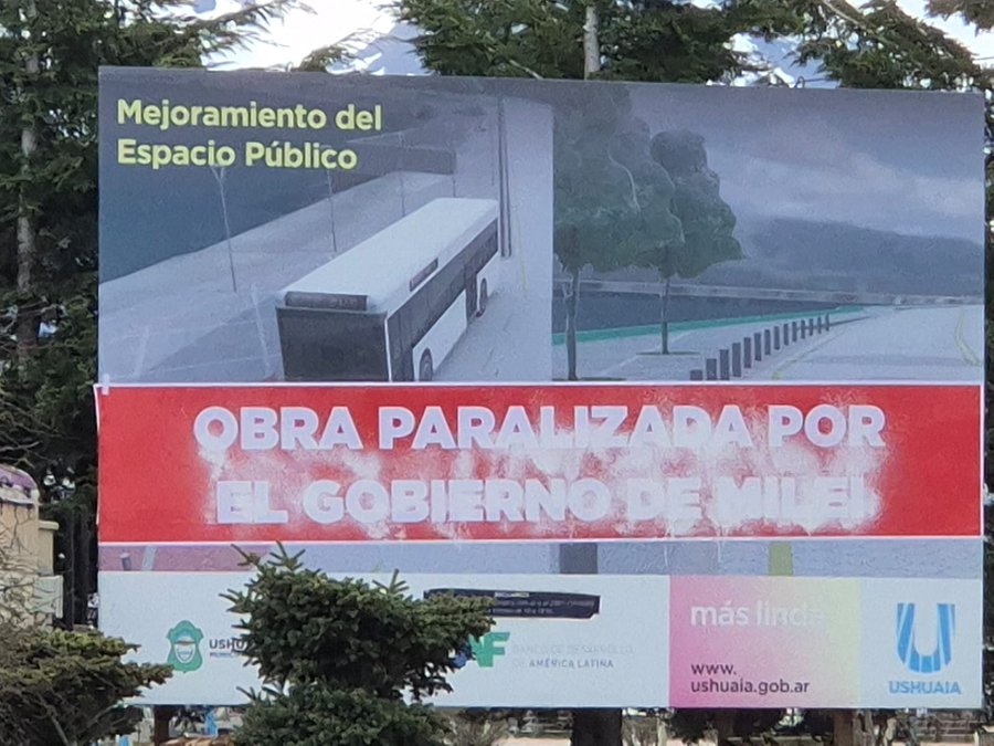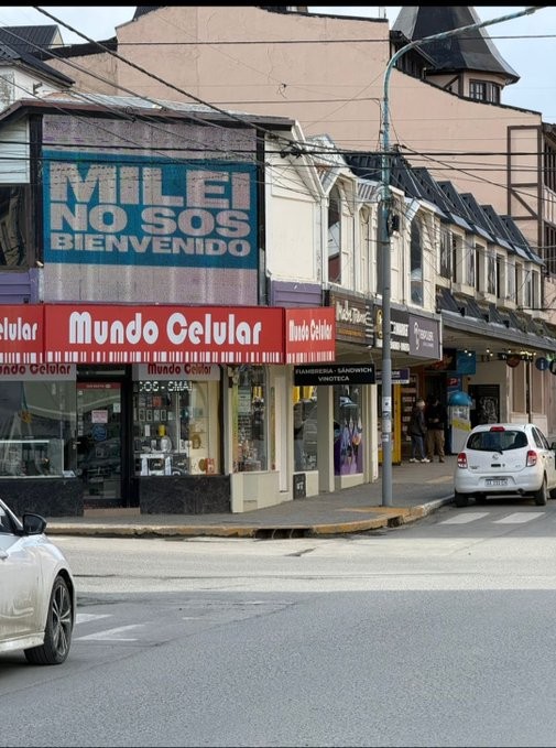Las calles de Ushuaia mostraban carteles contra la llegada de Milei a la ciudad.