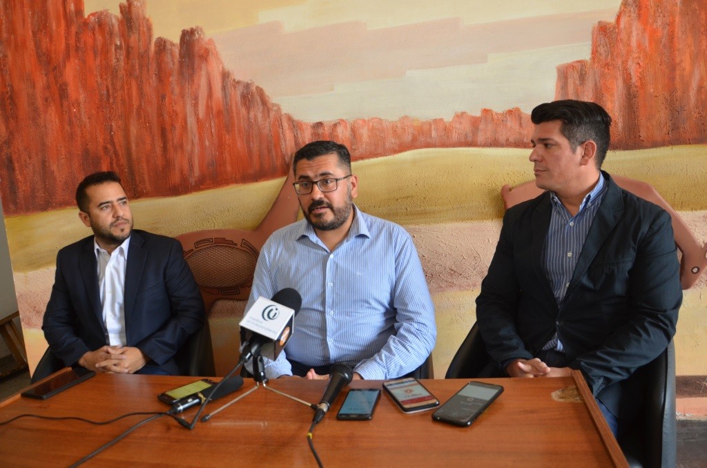 En conferencia de prensa en la Secretaría de Turismo, el director de Planificación Turística, Pablo Barros, junto al gerente comercial regional de UP Grade, Ismael Geredus, y el ex gerente de Snow Travel La Rioja, Maximiliano Yacante, brindaron información sobre los avances del caso.
