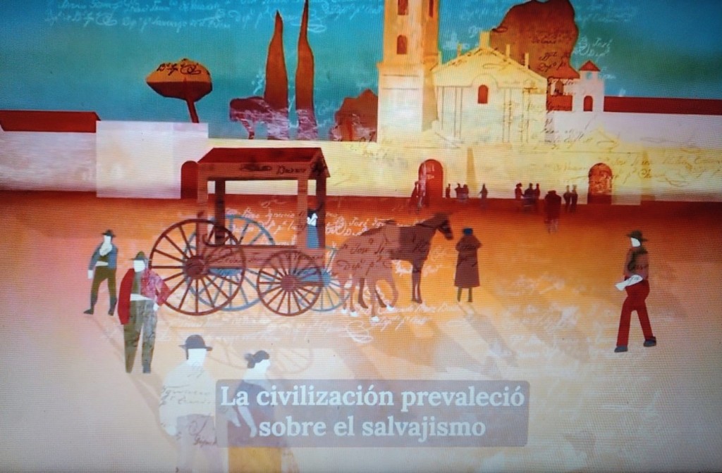 El video continúa relatando que “estableció las primeras estructuras sociales y políticas fundadas en el derecho, la fe cristiana, los valores occidentales promoviendo el orden y sentando las bases del progreso en el Nuevo Mundo”, y de modo absolutamente detestable la narración señala que “la civilización prevaleció sobre el salvajismo y el orden sobre el caos”.