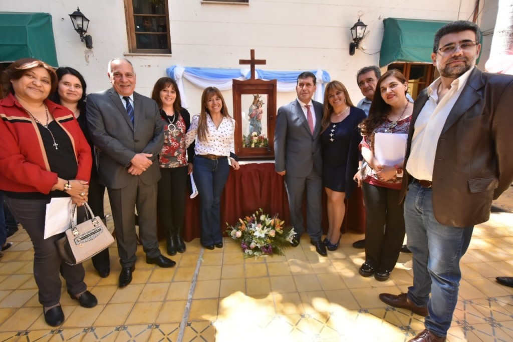 La recepción a la Virgen del Rosario de San Nicolás, Patrona de la Legislatura, que encabezó el gobernador Sergio Casas, se realizó en el Patio de La Unión Latinoamericana, donde impartió la bendición el Padre Jorge Hilal.
