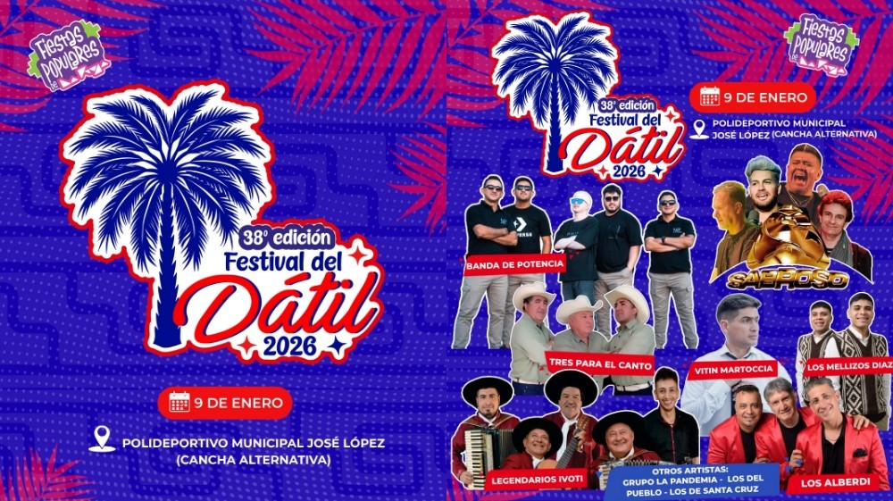 El municipio del departamento Independencia, con su cabecera Patquía, se prepara para la 38° edición del Festival del Dátil, que se realizará el próximo viernes 9 de enero y contará con una importante grilla de artistas.