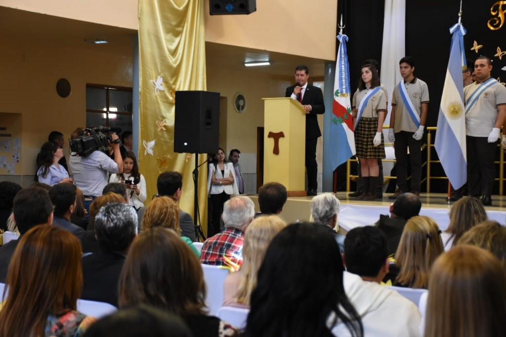 En la ocasión el primer mandatario destacó a la escuela San Francisco por su acciones en la comunidad de pregonar por el pan y bregar para vivir: “en una común unión con los hermanos en familia en una provincia que es profundamente creyente, que adora y venera a sus santos e imágenes como San Francisco, San Nicolás y el Niño Alcalde”.