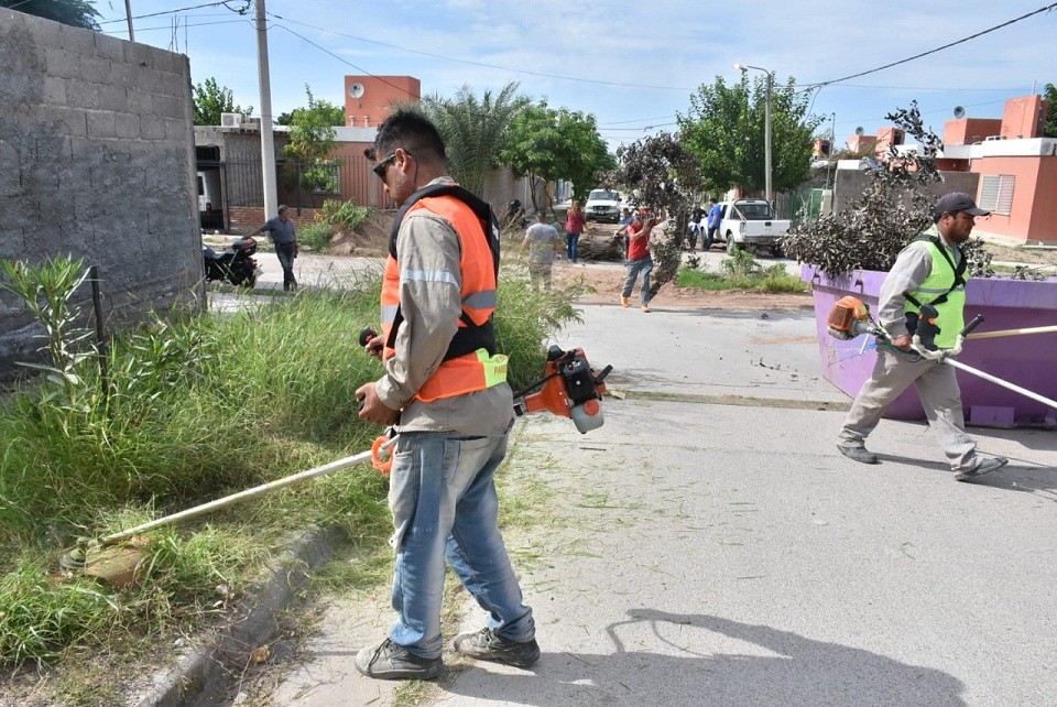 Con la coordinación de diversas áreas operativas y de servicios, la comuna trabajó intensamente en el barrio del sector Oeste para recuperar los espacios verdes de basura y maleza y así contribuir a un pedido de los vecinos.