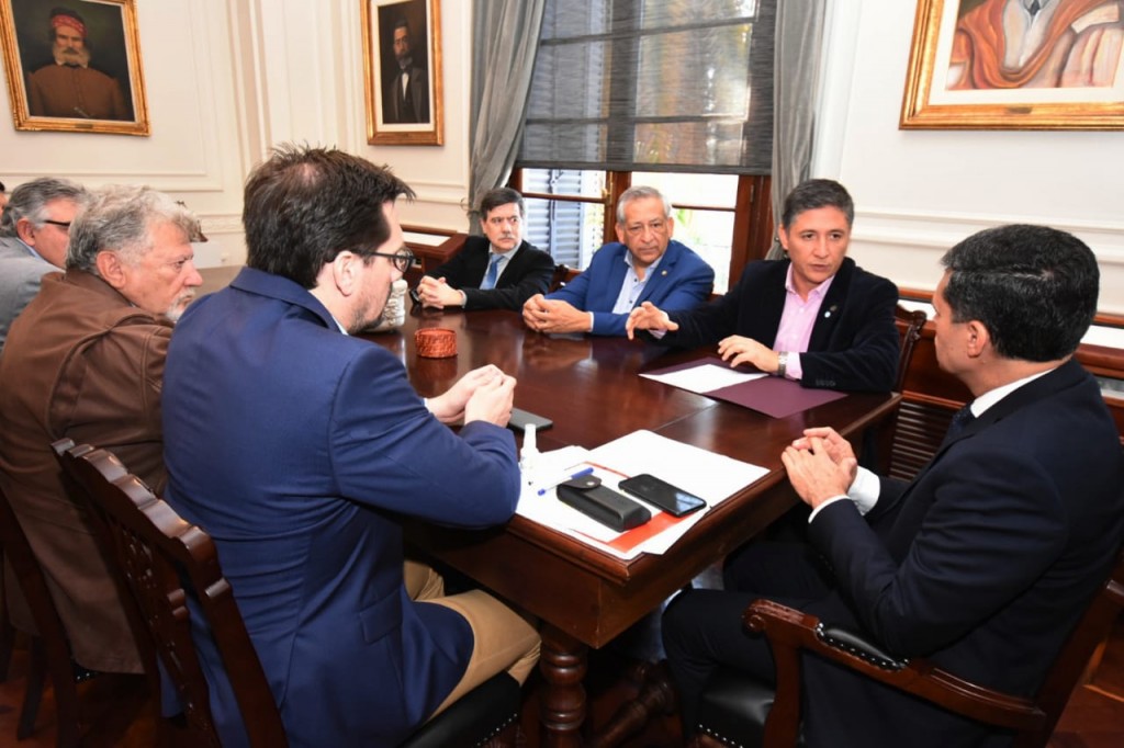 El gobernador Sergio Casas, junto al ministro de Educación, Juan Luna, recibió este jueves a representantes de universidades públicas de la región Cuyo. Los mismos plantearon la crítica situación económica por la que atraviesan las casas de altos estudios y entregaron un documento para trabajar en forma conjunta.