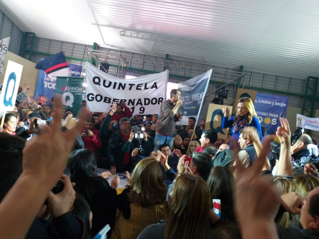 "Ya vamos a definir los otros temas importantes para la provincia, pero ahora tenemos que trabajar para conseguir una victoria contundente que nos permita obtener las tres bancas, porque La Rioja se merece tener representantes que luchen por sus necesidades" expresó el gobernador, en obvia alusión a los carteles con las leyendas "Quintela Gobernador 2019" y "Tere Madera Gobernadora 2019" entre los más sobresalientes.